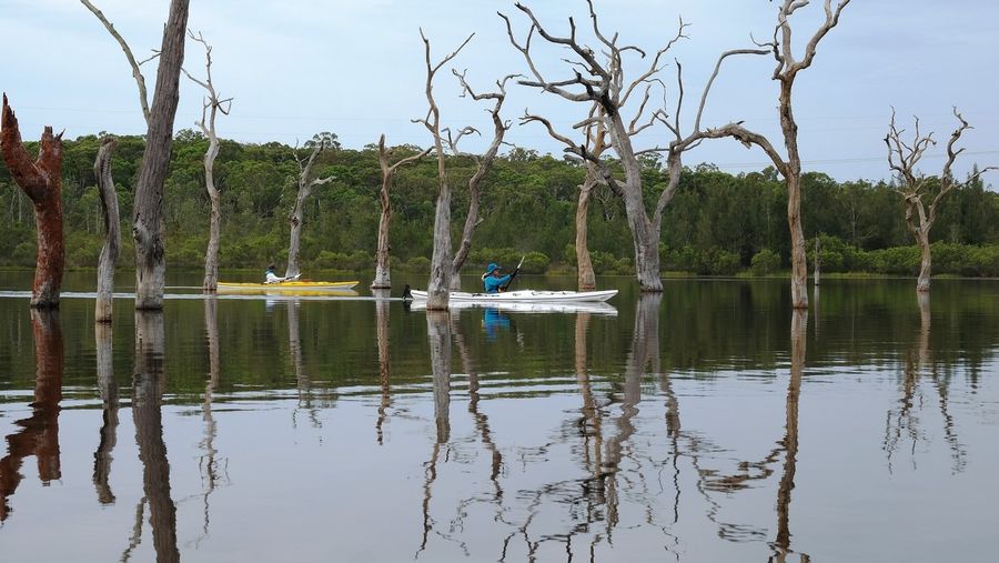 of our activities. We meet on Tuesdays. Launch time is 0900, so if you want to join us arrive by 0830 please. We have morning tea/lunch afterwards. Bring something nice to eat if you can, and a couple of dollars to cover the tea, coffee, milk etc. We paddle in all lakes, lagoons, creeks and rivers from Berowra to Clarence Town, and everywhere in between. We generally paddle for 2 hours and travel between 6 and 12km, at a gentle pace. |